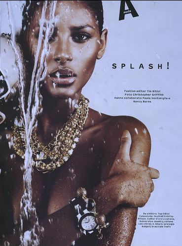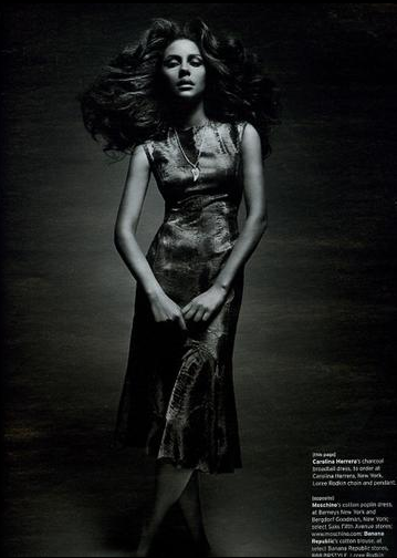 “Born in a small port town, Emanuela mapped out her career goals at an early age. “When I was nine I told my father, ‘I want to be a model! Take me to the city. I need to see some people.’” She immediately booked a supermarket catalog, and later Jennifer Lopez cast the newcomer in her fall runway show in New York City. “It was crazy,” says Emanuela of her first big turn in the spotlight. She admits to some pre-show jitters. But when the lights go up and she hits the ground strutting, it’s obvious she’s in her element.”