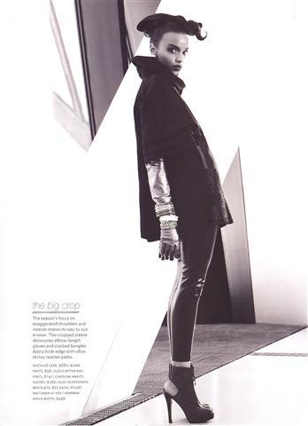 “I’m more laid-back, tomboyish with heels on. Lately, I tend to wear a boy’s V-neck with skinnies and high pumps. Maybe I’ll throw on a blazer or an old-school leather jacket. But I like to mix it up, I don’t think I have a definite style.”