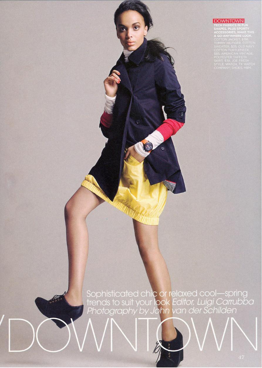 “There are so many different styles—it’s a city where everything goes. You have hipster style: people who keep it funky with funky patterns and different textures. Prep-posh styling, like big shoulders, big sunglasses, big purses—pretty much Yorkville! Then there’s downtown, which is like New York’s Lower East Side, with people wearing toques, T-shirts with holes in them, but which look kind of hot when paired with baggy pants.”