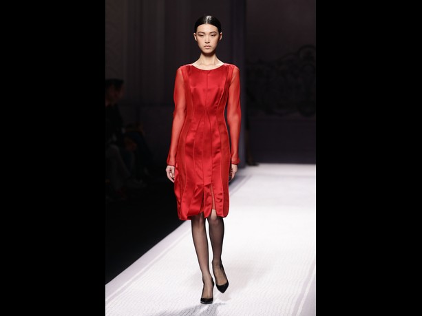 This winter will be burgundy tinted, the show seemed to say, as total burgundy looks, marched down: soft, ankle-length trousers, dresses and matching suit jacket, or cocktail dresses will tint our wardrobes.