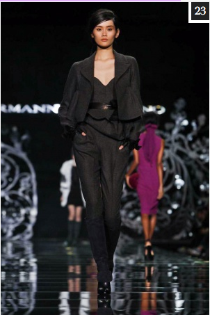 As for the collection as a whole it was clear that the tailored and polished look was the running theme. It worked. Models looked comfortable in what they wore with most outfits neither too tight nor too loose. When it came to accessories, models often sported riding hats and great pair of winter boots ready to march off into the distance. ~ Pascale Barget