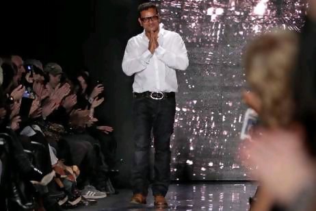 He materialized this (citing the decadent land of India as his main inspiration) through heavy beading, ethnic embroidering, and metallic embellishments prominently displayed on sparkly caftan dresses, glimmering gold sequined gowns, shimmering silver power suits, gold-studded skinny pants, cute cocktail frocks, and flouncy feather skirts. While necklines were deep, backs were exposed, and thigh slits were sky high, it wasn’t done in a tasteless, garish way at all—Khan’s fall offering came across masterfully artistic and incredibly celebratory of the fabulous feminine figure. If you’ve got it, flaunt it.