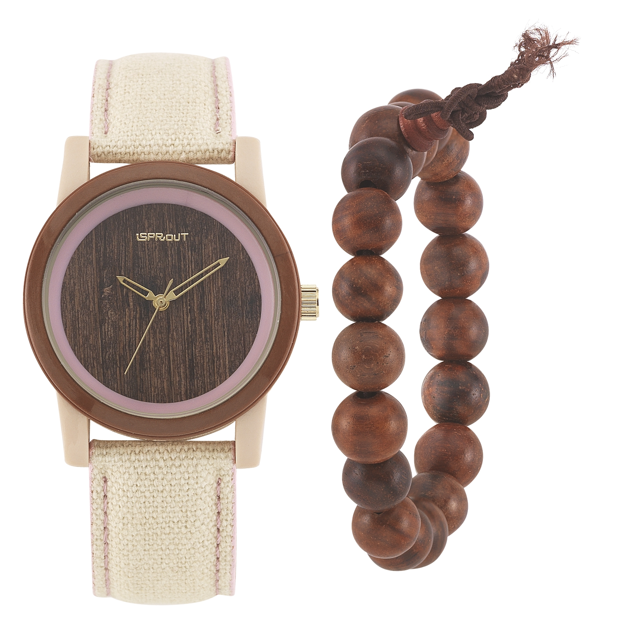 Sprout Women’s Organic Cotton Strap Watch and Bamboo Bracelet