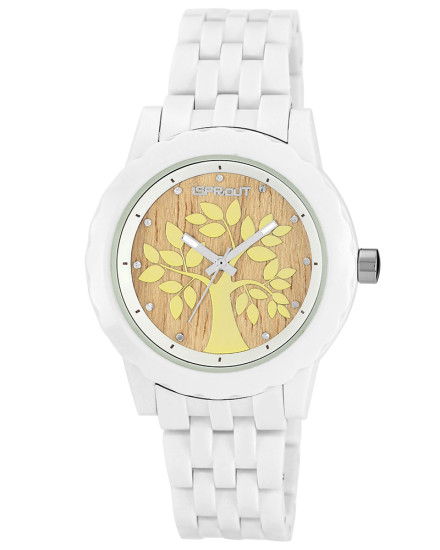 Sprout Women’s ST/6802TNWT Wood Dial Tree Motif White Corn Resin Bracelet Watch