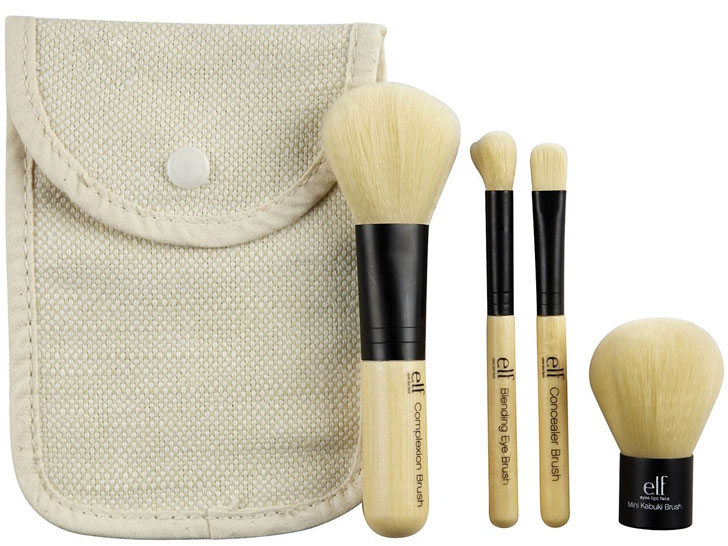 Comprising a complexion brush, a concealer brush, a blending eye brush, and a mini Kabuki brush, E.L.F.’s four-piece set features recycled-aluminum ferrules, ergonomic bamboo handles, and 100 percent cruelty-free Taklon bristles.