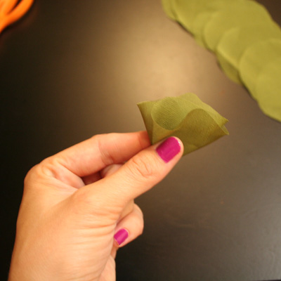 Repeat the last five steps with the remaining 8 fabric circles to create another ruffled bunch. That’s it!